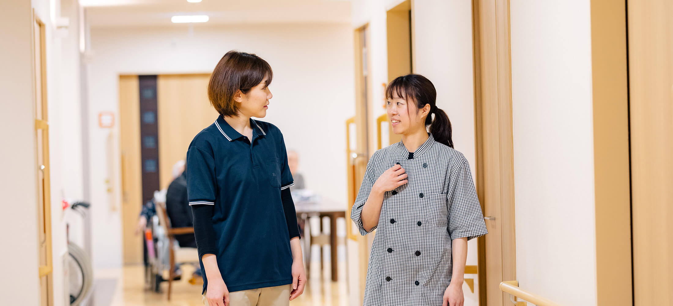 法人内の他施設での研修に参加できたり、アドバイスをいただけたりすることです。一つの施設に留まるのではなく、他施設に目を向けることで視野が広がるので、とても良い環境だと思います。
