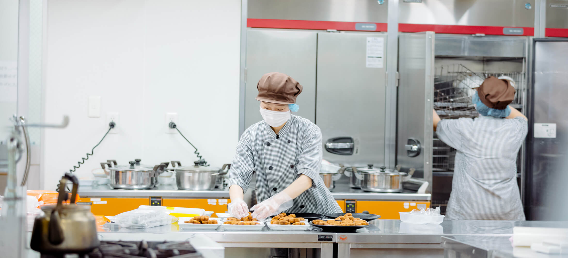 現在、朝夕で最大120名、昼は150名の食事を提供させていただいています。「100人100食」により近づけるよう、これからも献立作成や企画、マネジメント他、現場と調理の仕組みづくりに取り組んでいきたいです。